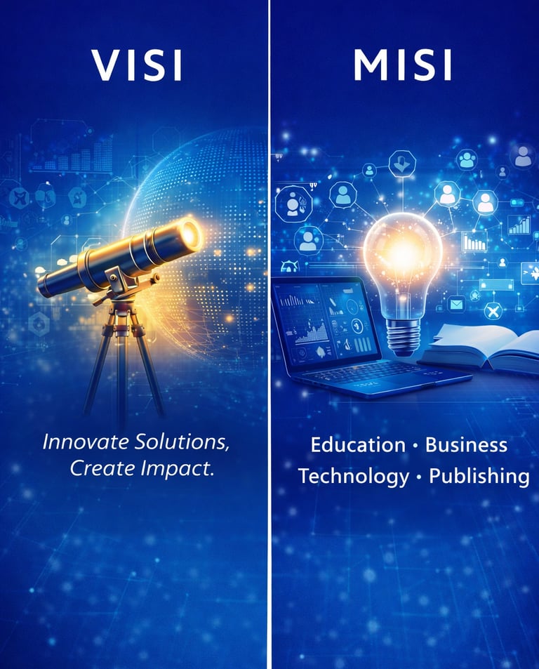 Menjadi perusahaan konsultan dan penyedia solusi terintegrasi yang unggul, inovatif, dan terpercaya dalam mendukung kemajuan pendidikan, bisnis, transformasi teknologi, dan literasi secara berkelanjutan.
